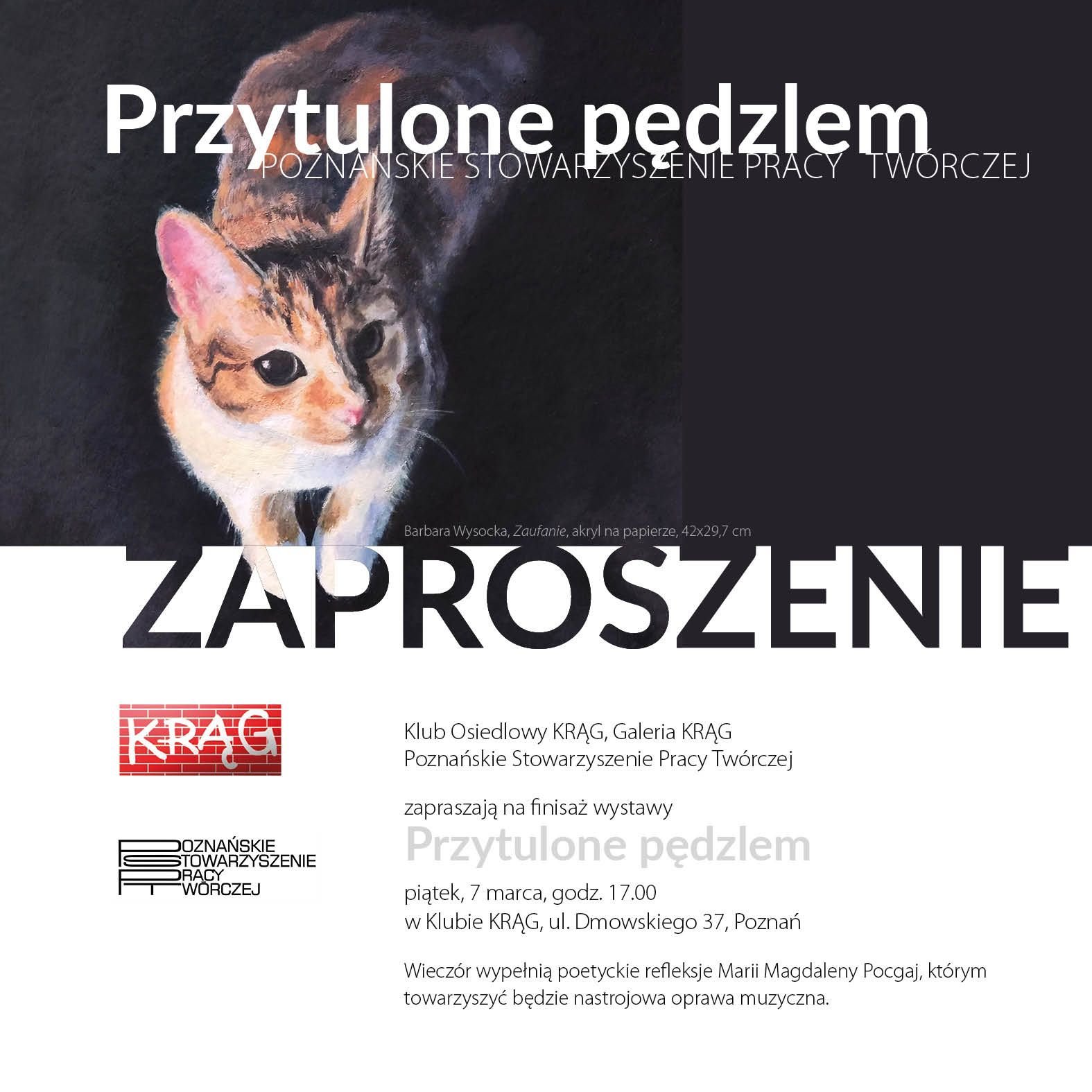 Dnia 7 marca 2025r. o godz. 17:00 w budynku Klubu Osiedlowego KRĄG odbył się wernisaż wystawy zbiorowej Poznańskiego Stowarzyszenia Pracy Twórczej pt. "Przytulone Pędzlem", w którym miałam przyjemność wziąć współudział.