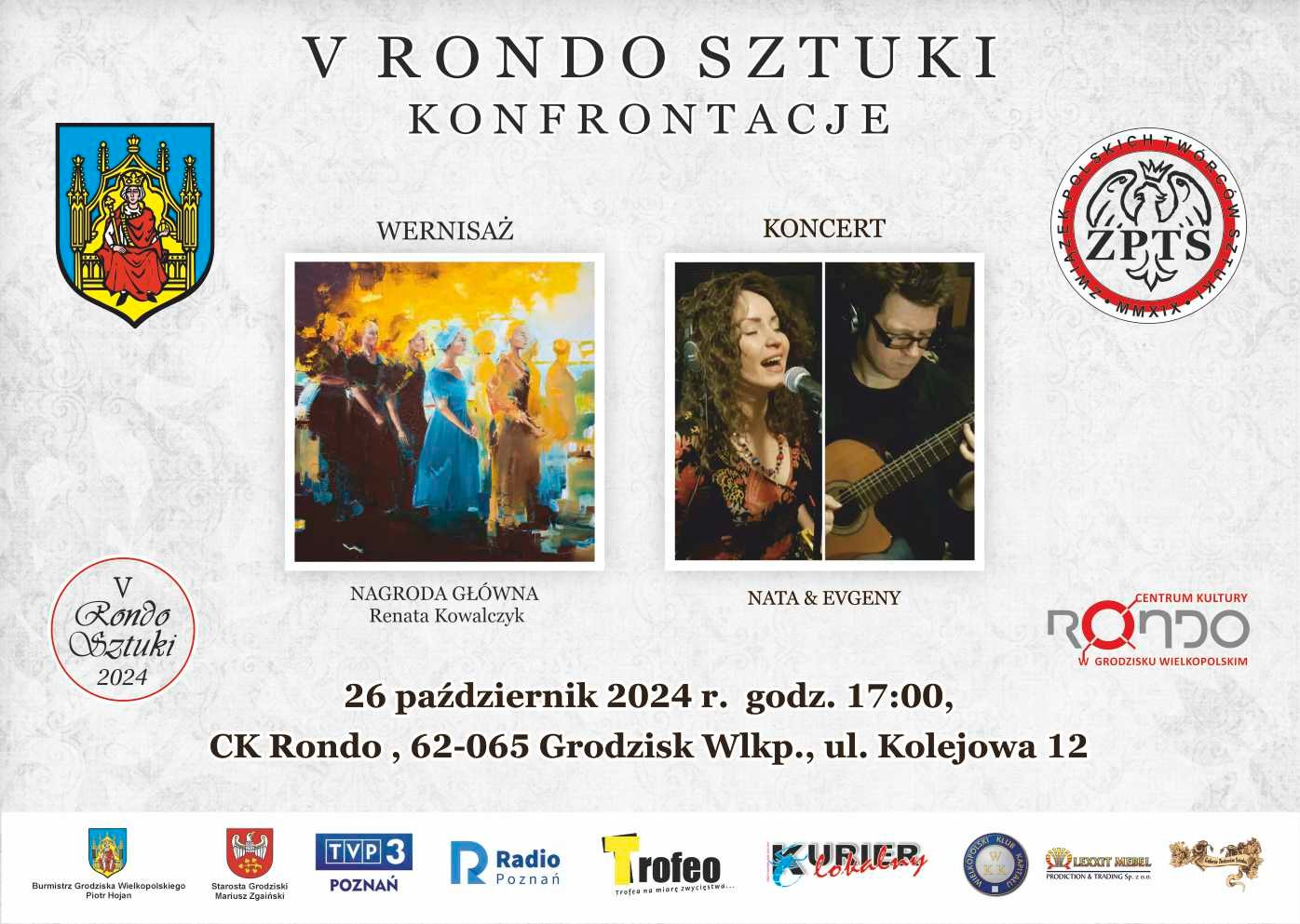 5 LECIE ZPTS , V RONDO SZTUKI W II cześci koncert NATA&EVGENI , a IIII części będzie w hotelu RESLIŃSKI , " KWADRANS Z POEZJĄ " i KOLACJA I ZABAWA DO RANA, śniadanie sponsoruje lexxit mebel.