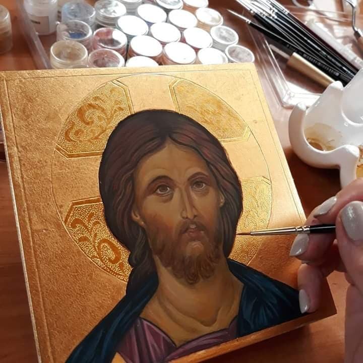 Realizuję ją z zachowaniem najstarszych, tradycyjnych technik - bizantyjskich oraz greckich (deska, tempera jajowa, złocenia na pulment oraz mikstion, szelak, olifa).