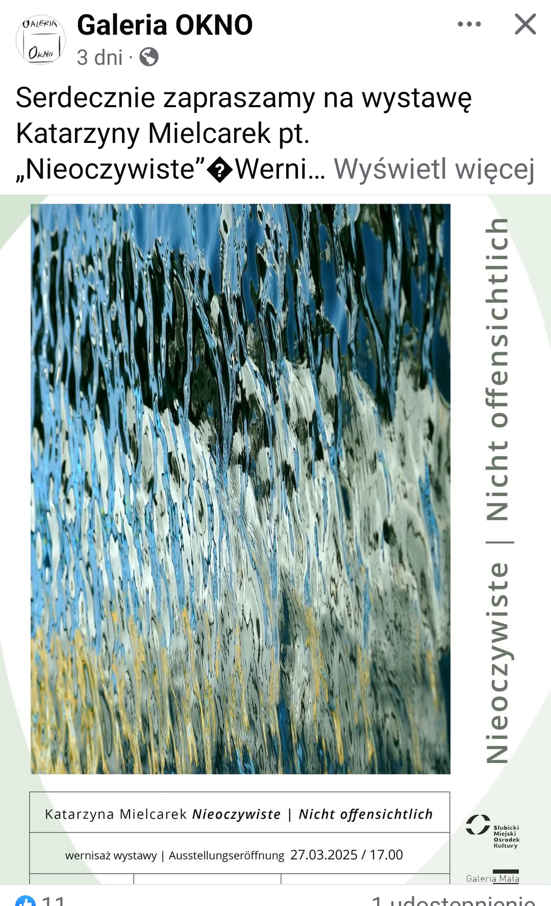 27 Marca 2025 o godz 17 Galeria Mała Słubickiego Miejskiego ośrodka kultury zaprasza na wernisaż wystawy fotograficznej Katarzyny Mielcarek pt ,,Nieoczywiste"Będzie to. .pierwsza wystawa z cyklu jubileuszowego z okazji 20lecia działalności artystycznej .Pracę Katarzyny Mielcarek to połączenie wrażliwości artystycznej z tajemnicą natury, które przeplatają się w niezwykły sposób. „Nieoczywiste" to wystawa pełna emocji, barw i rytmów, które pozwalają dostrzec to, co niewidoczne na pierwszy rzut oka. Oglądając jej fotografie, często pada pytanie: „Czy to jest namalowane?". Tak, to namalowane naturą i wrażliwością artystki, ale to nadal fotografia. Katarzyna Mielcarek to malarka i fotografka, członkini Związku Polskich Twórców Sztuki oraz Związku Artystów Plastyków. Jest organizatorką warsztatów fotograficznych i malarskich, a jej prace były prezentowane na wielu wystawach zbiorowych i indywidualnych. Zachęcamy do przybycia i odkrycia tej niezwykłej kolekcji, która otworzy przed Wami nowe spojrzenie na świat wokół nas. Serdecznie zapraszamy