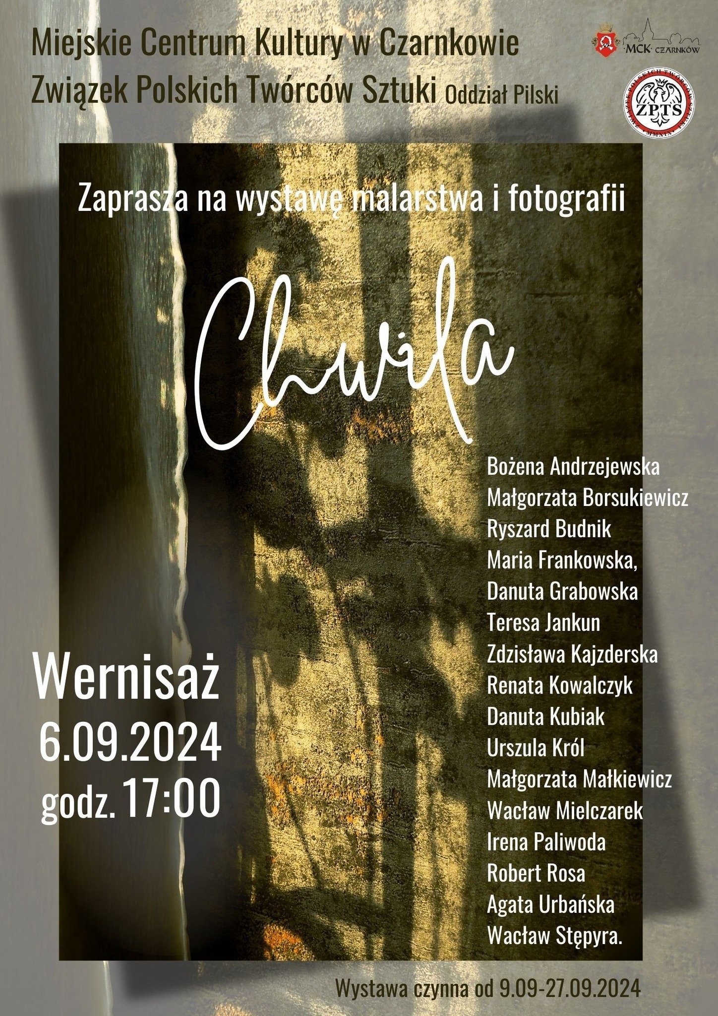 Serdecznie zapraszamy na wernisaż wystawy malarstwa i fotografii pt. "Chwila", która odbędzie się w Miejskim Centrum Kultury w Czarnkowie