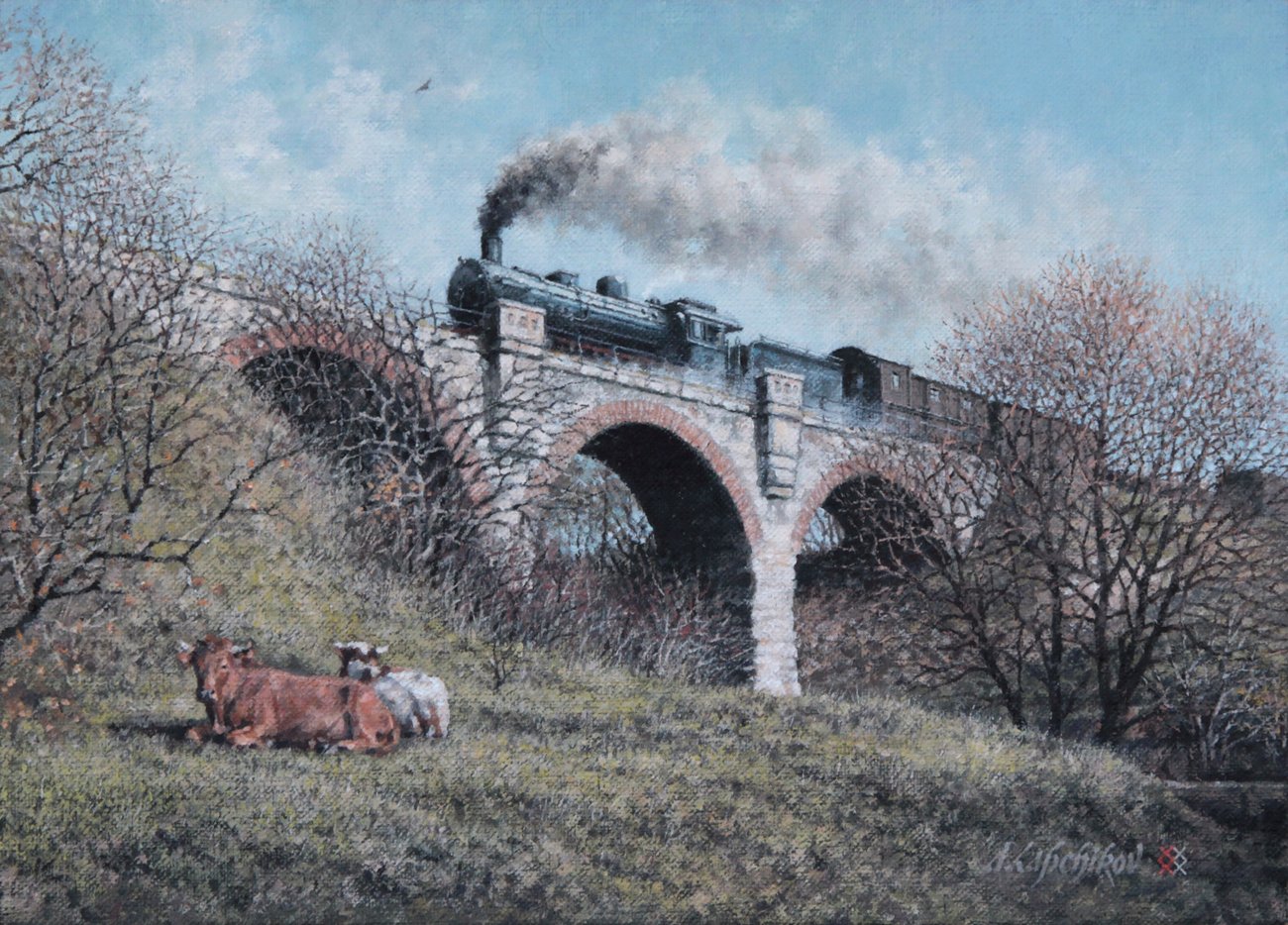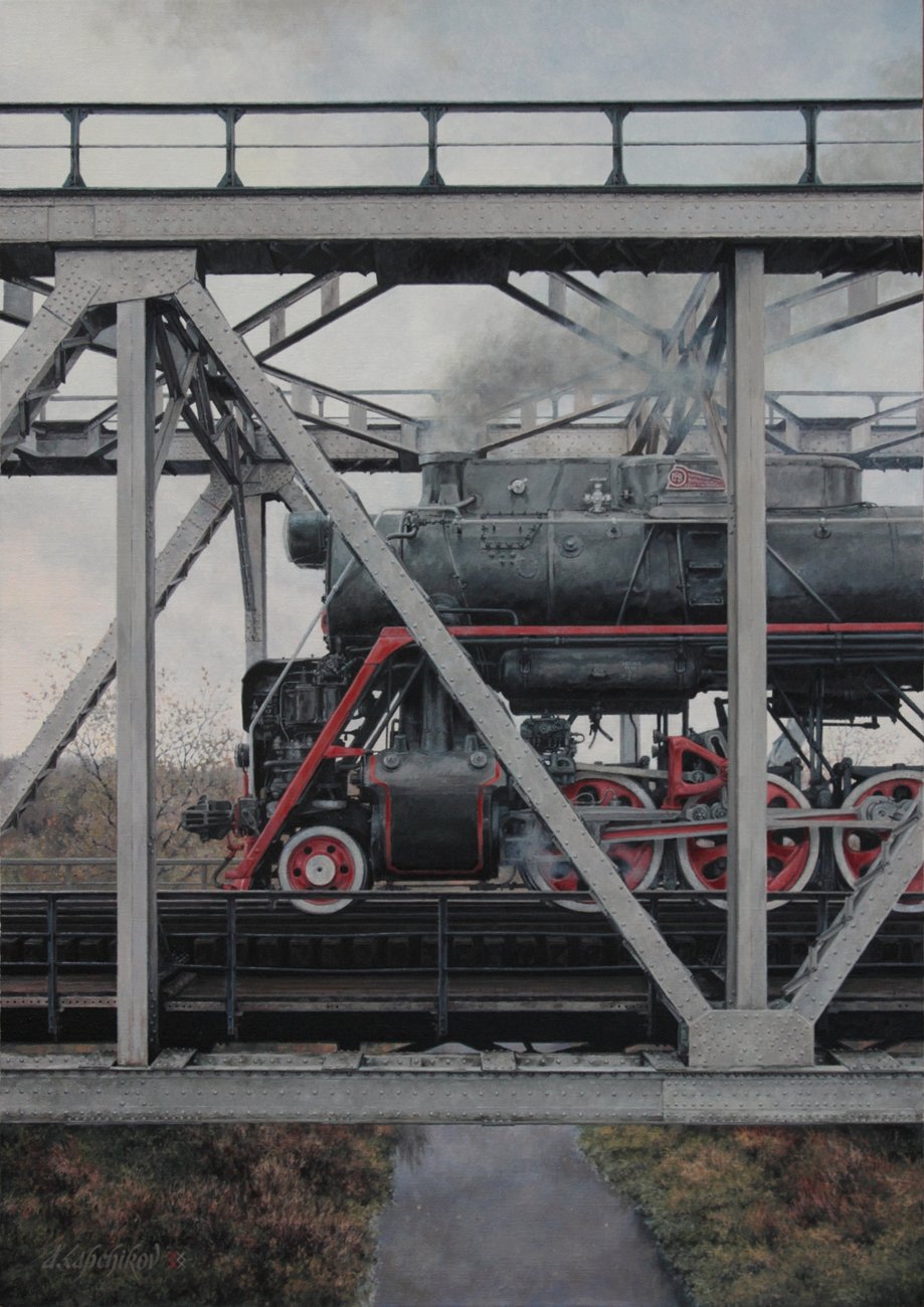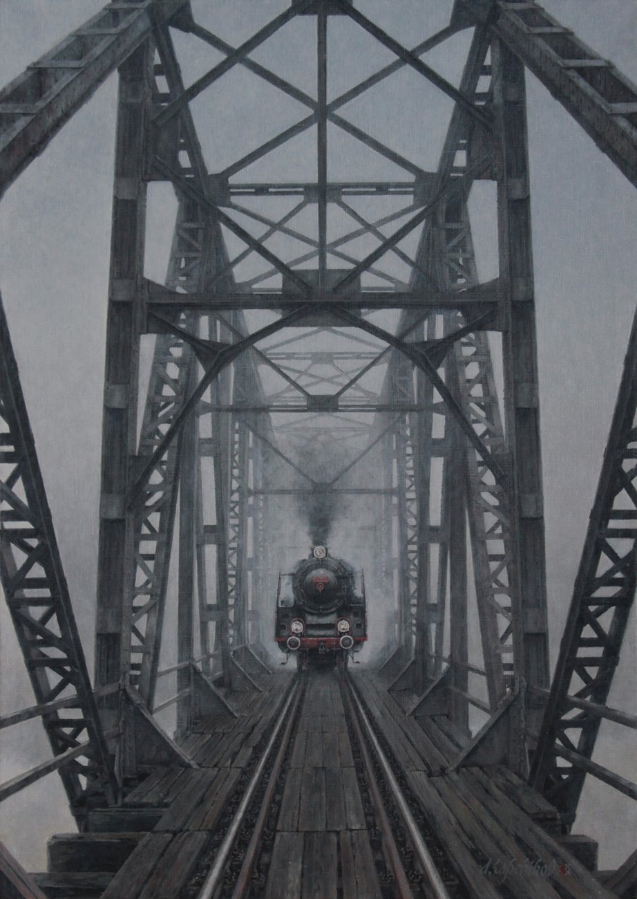 pierwsza praca przedstawia most nad Bobrem w Żaganiu.